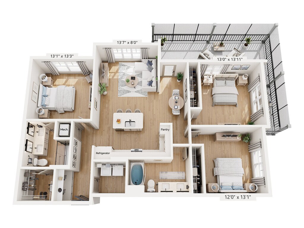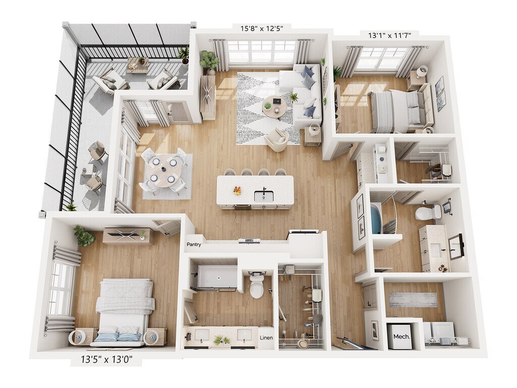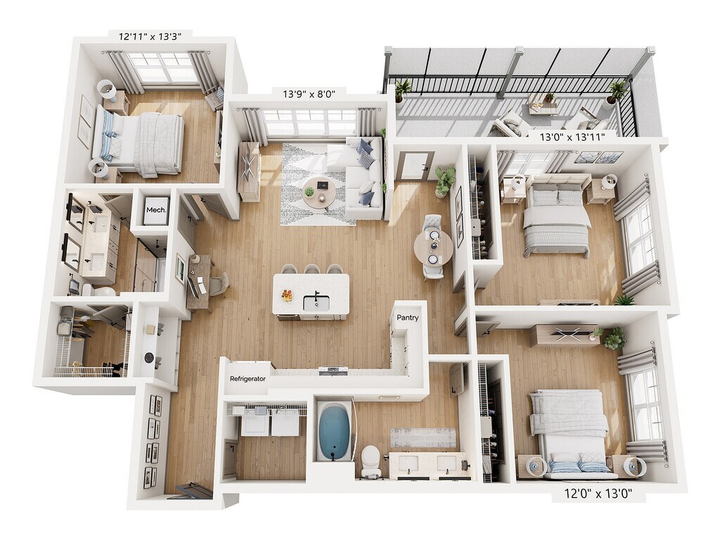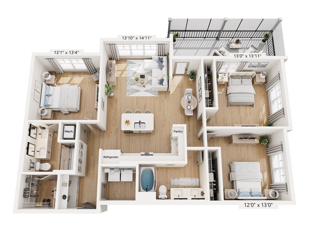 Modelo de apartamento: A3Desde $1,5321 Dormitorio, 1 Baño, 821 sq ftDisponible Ahora![]()