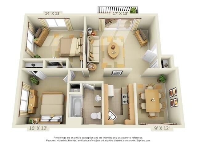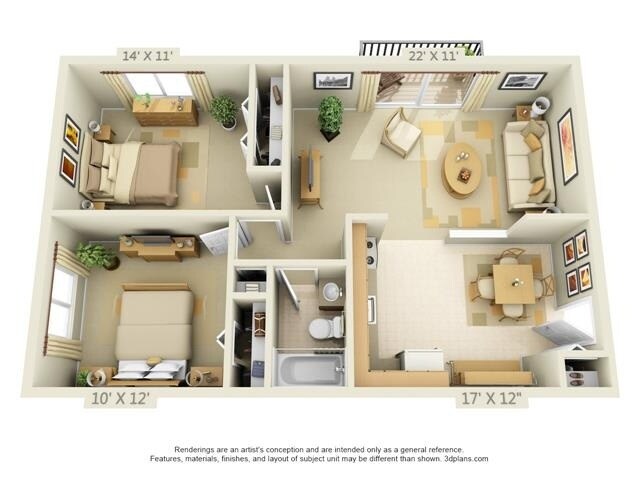 Modelo de apartamento: Style CDesde $1,3402 Dormitorios, 1 Baño, 840-860 sq ftNo Disponible![]()
