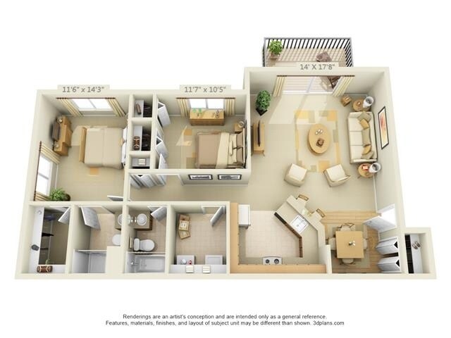 Modelo de apartamento: Style E$1,5502 Dormitorios, 2 Baños, 1100-1250 sq ftNo Disponible![]()