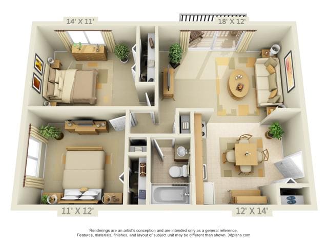 2 Dormitorios, 1 Baño, 840-860 pies²Disponible AhoraGalería del Modelo