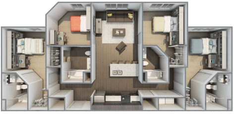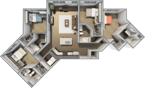 Modelo de apartamento: D4Desde $8794 Dormitorios, 4 Baños, 1258 sq ftDisponible Ahora![]()