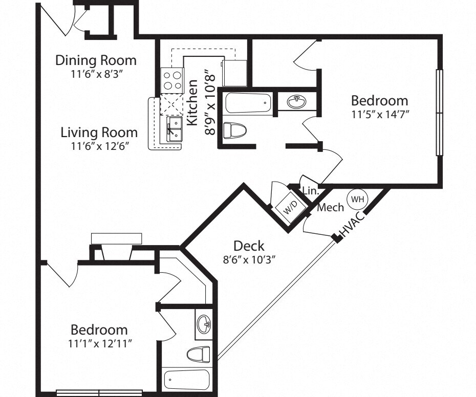 Modelo de apartamento: B2Desde $2,1252 Dormitorios, 1.5 Baños, 916 sq ftDisponible Ahora![]()