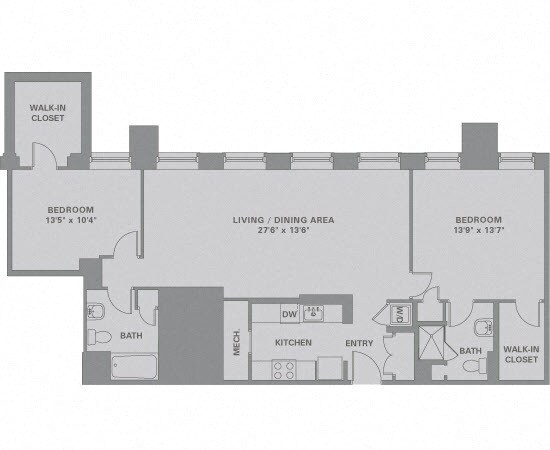 Modelo de apartamento: 1 Bed/1 Bath-A26$2,0801 Dormitorio, 1 Baño, 950 sq ftDisponible Ahora![]()