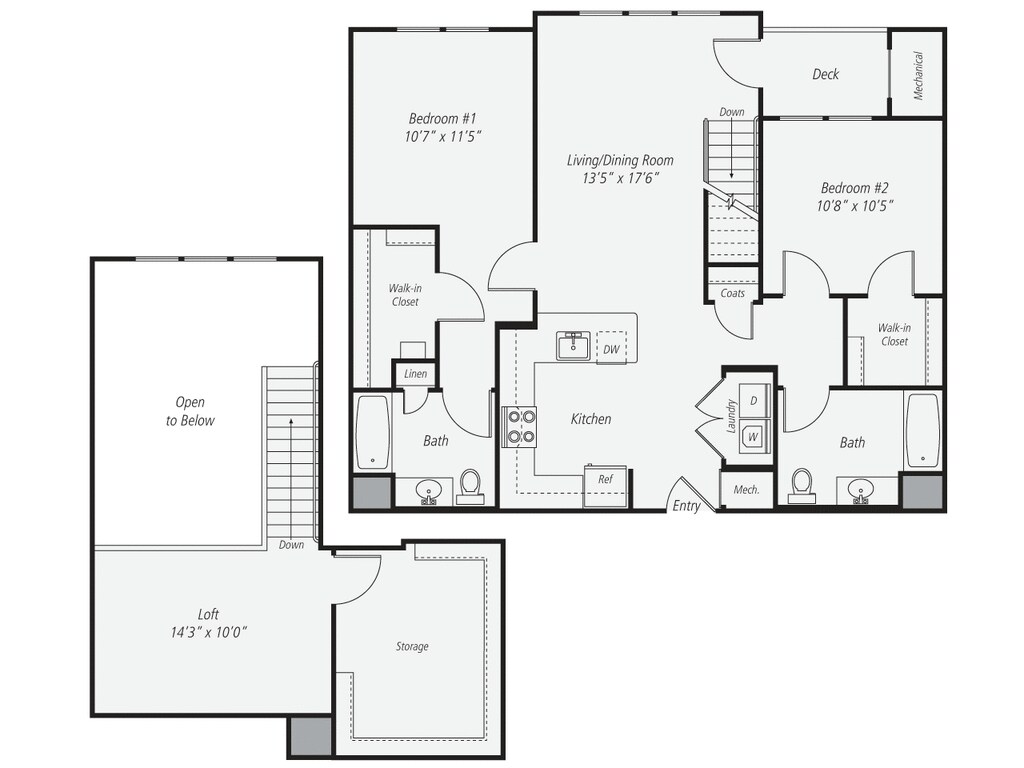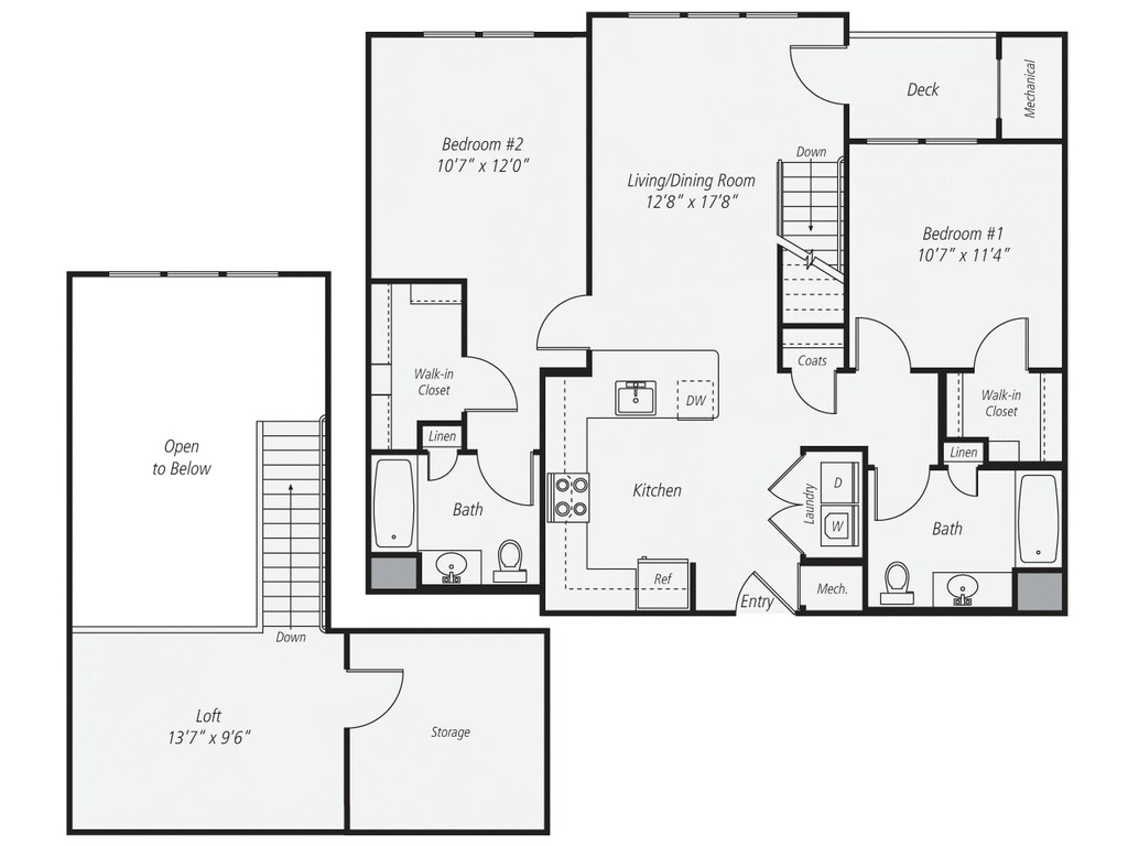 Modelo de apartamento: 1 Bed/1 Bath Loft-A2LDesde $3,0021 Dormitorio, 1 Baño, 955 sq ftDisponible January 31, 2026![]()