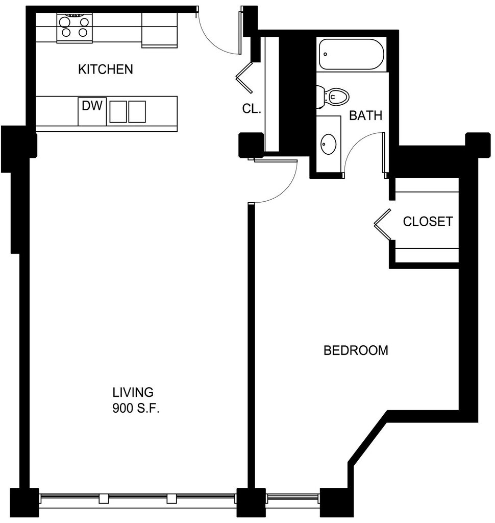 Estudio, 1 Baño, 570 pies²Disponible AhoraGalería del Modelo