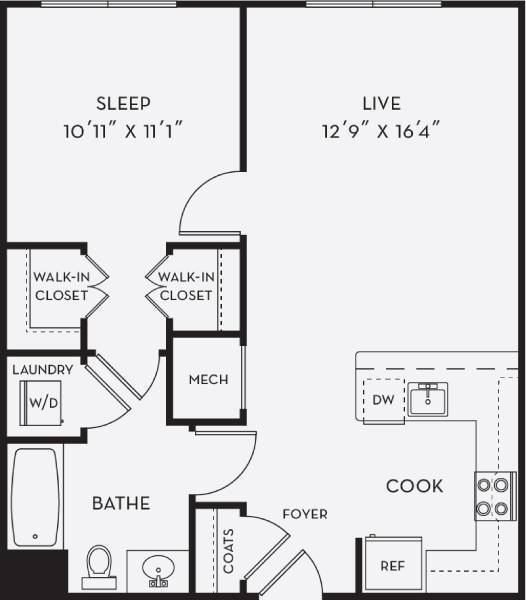 1 Dormitorio, 1 Baño, 758 pies²Precio Mensual TotalDisponible Oct 8El más grandeEsta opción tiene las unidades más grandes para este modeloGalería del Modelo