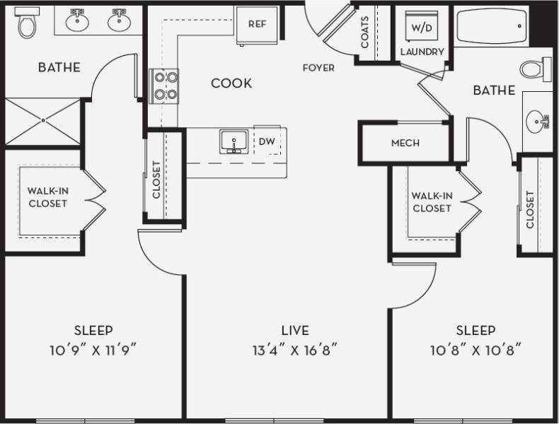 Modelo de apartamento: B5Llame para Precios2 Dormitorios, 2 Baños, 1210 sq ftNo DisponibleB5 - Plano 1 Plano: B1