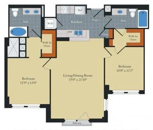 1 Dormitorio, 2 Baños, 968 pies²El más grandeEsta opción tiene las unidades más grandes para este modeloGalería del Modelo