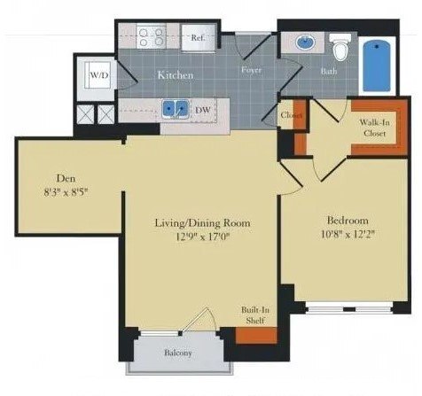 Modelo de apartamento: A6D1 Dormitorio, 1 Baño, 820-849 sq ftDisponible Ahora![]()