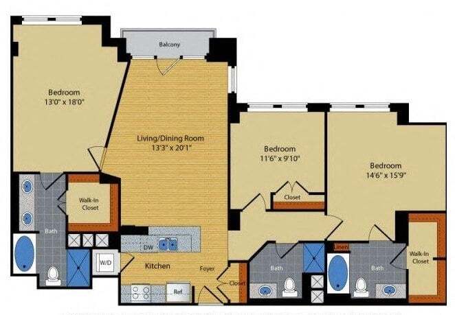 Modelo de apartamento: A31 Dormitorio, 1 Baño, 724 sq ftDisponible Ahora![]()