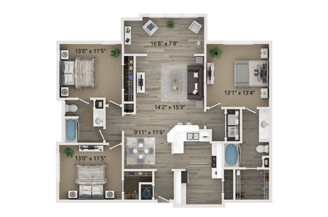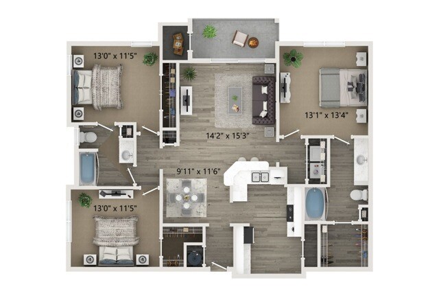Modelo de apartamento: A3Desde $1,5871 Dormitorio, 1 Baño, 788 sq ftDisponible Ahora![]()