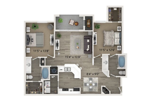 Modelo de apartamento: A2Desde $1,4921 Dormitorio, 1 Baño, 643 sq ftDisponible January 30, 2026![]()