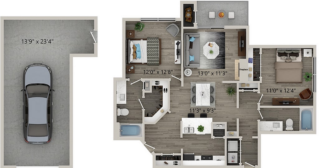 Modelo de apartamento: A4Desde $1,1351 Dormitorio, 1 Baño, 856 sq ftDisponible AhoraPlanosFotos![]()
