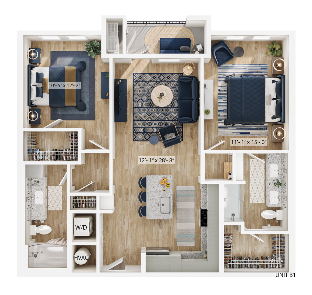 2 Dormitorios, 2 Baños, 1168 pies²Disponible Oct 15Galería del Modelo