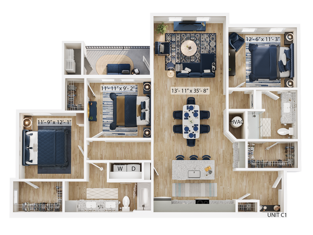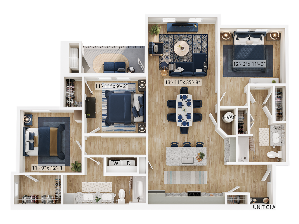 Modelo de apartamento: A1Desde $1,4691 Dormitorio, 1 Baño, 700 sq ftDisponible December 28, 2025![]()