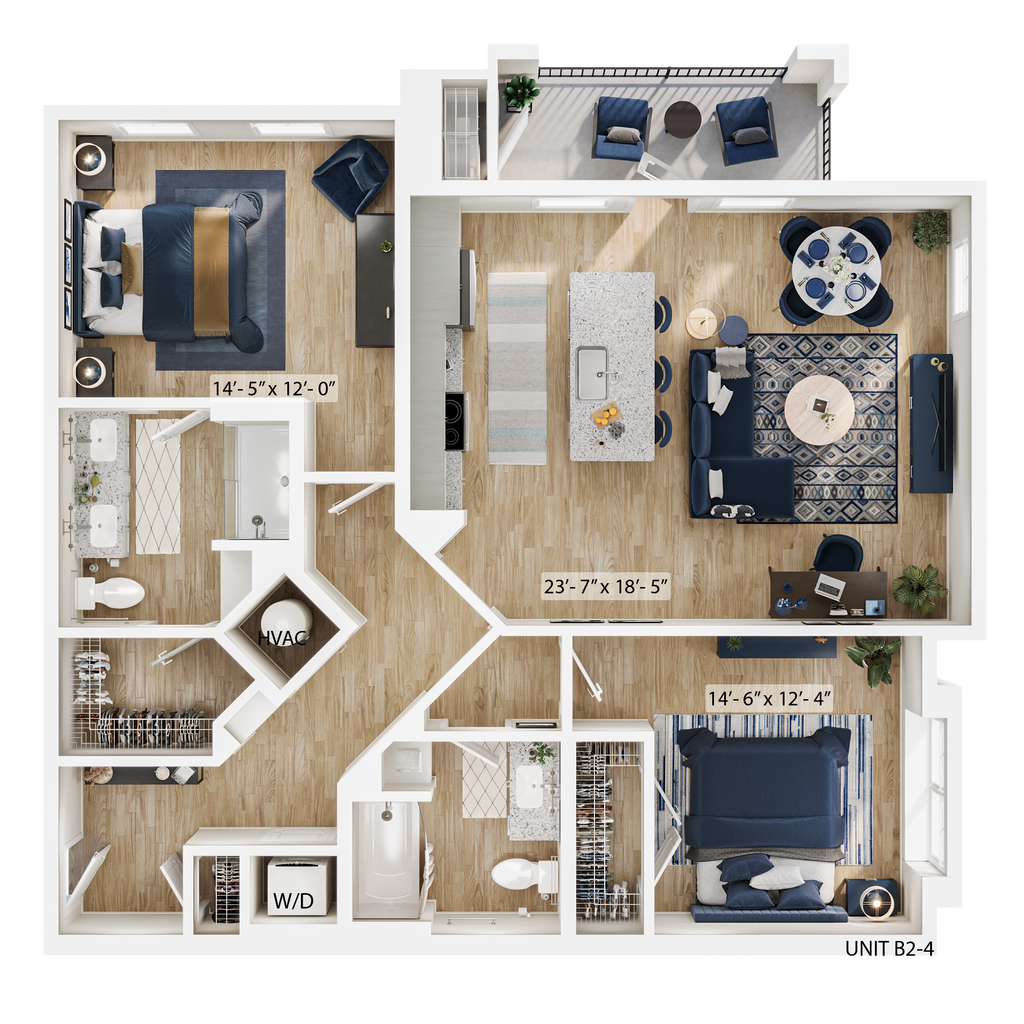 Modelo de apartamento: B2Desde $1,8952 Dormitorios, 2 Baños, 1168 sq ftDisponible Ahora![]()
