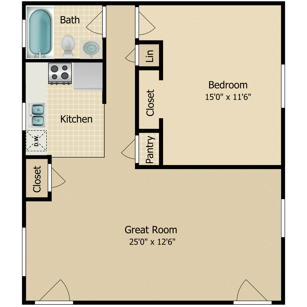 1 Dormitorio, 1 Baño, 425-610 pies²Galería del Modelo