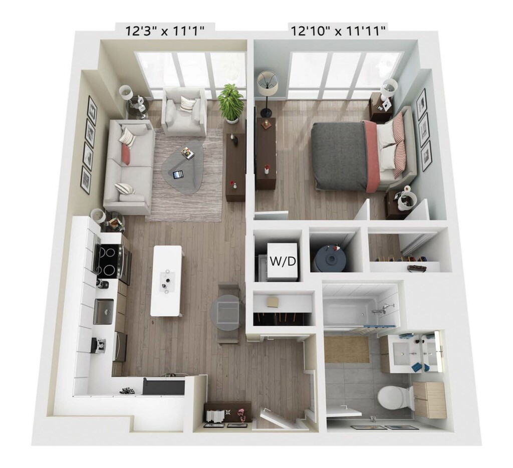 Modelo de apartamento: S11Desde $2,783Estudio, 1 Baño, 550 sq ftDisponible December 10, 2025PlanosFotos![]()
