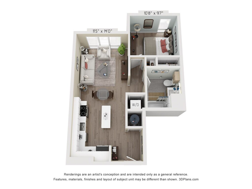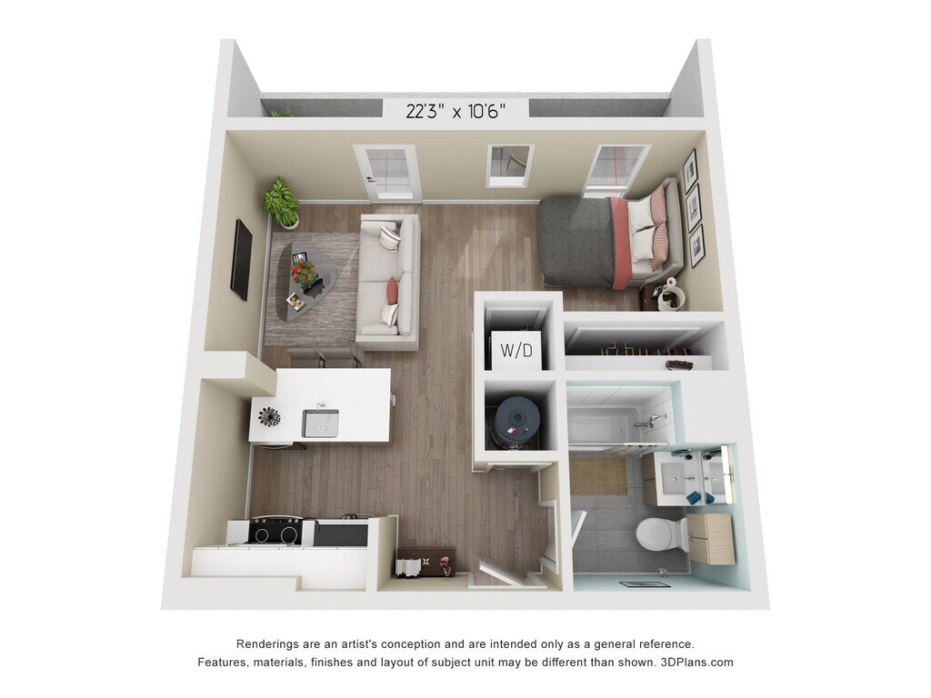 Estudio, 1 Baño, 662 pies²Disponible January 10, 2026El más grandeEsta opción tiene las unidades más grandes para este modeloGalería del Modelo