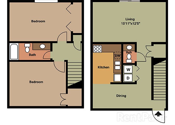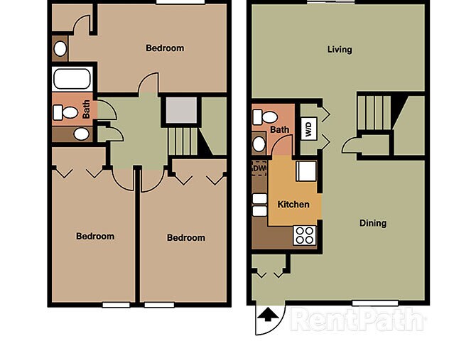 Modelo de apartamento: Two Bedroom Townhome2 Dormitorios, 1.5 Baños, 1056 sq ftNo Disponible![]()