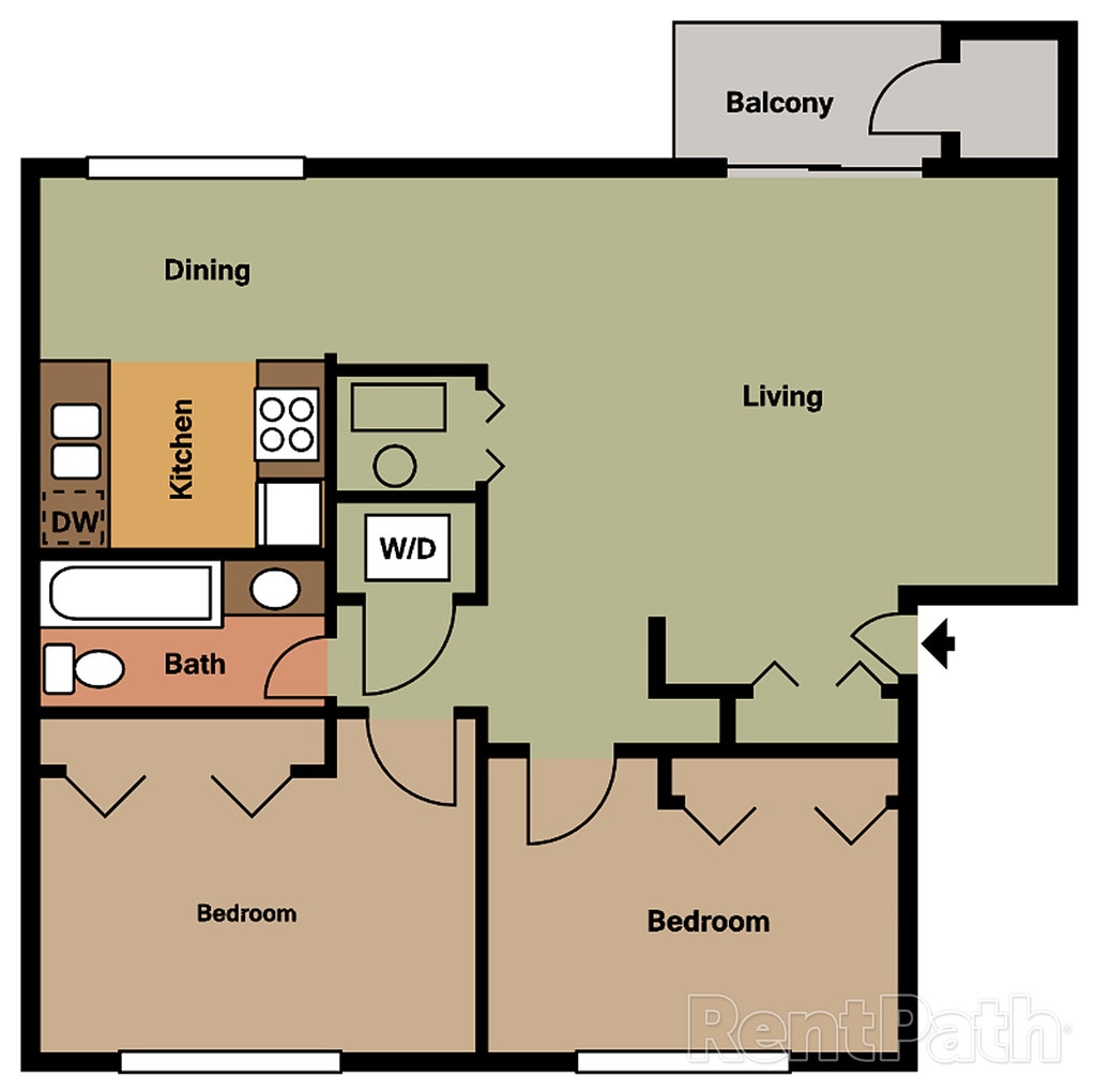 Modelo de apartamento: Two Bedroom2 Dormitorios, 1 Baño, 853 sq ftNo Disponible![]()