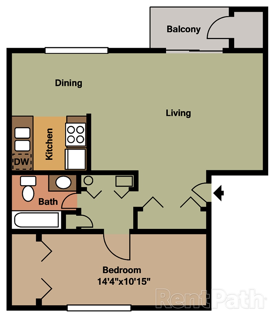 Estudio, 1 Baño, 624 pies²Galería del Modelo