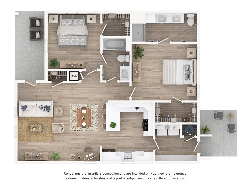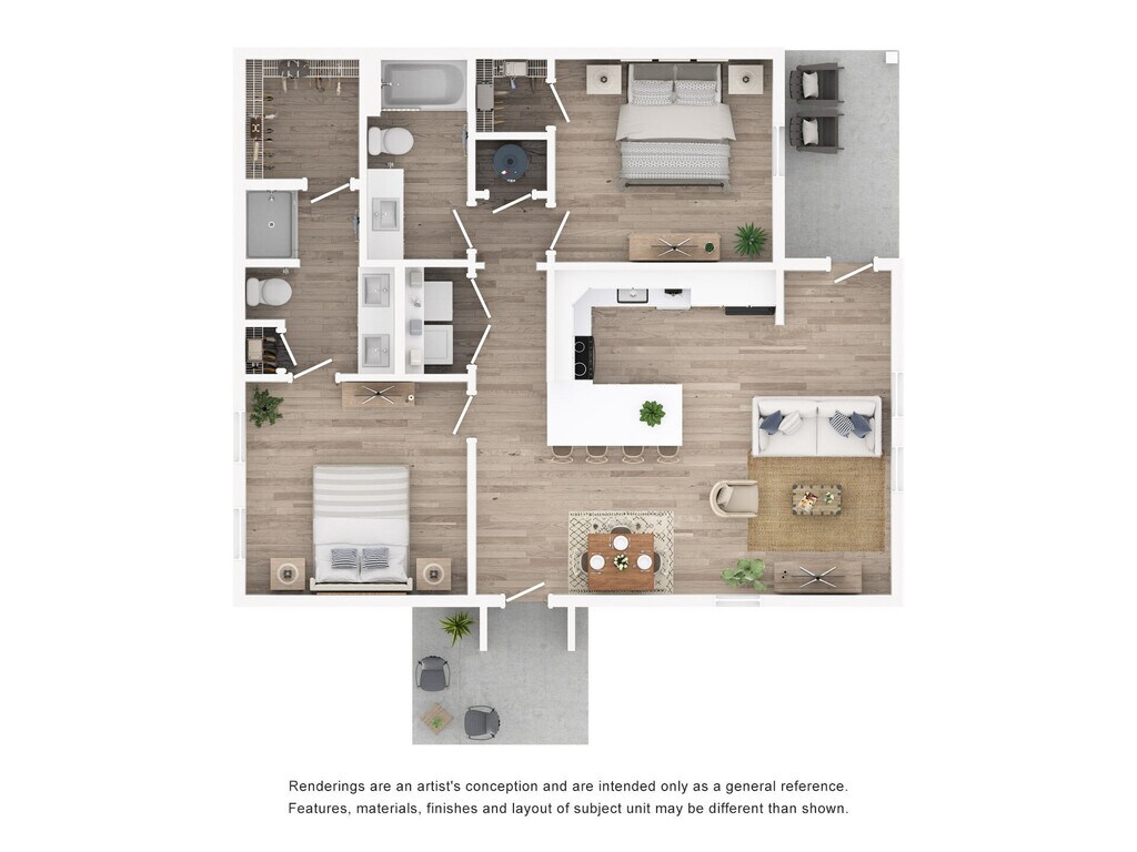 Modelo de apartamento: B2Desde $1,5172 Dormitorios, 2 Baños, 1106 sq ftDisponible Ahora![]()