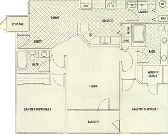 Modelo de apartamento: 1 Bed 1 BathDesde $1,2191 Dormitorio, 1 Baño, 870 sq ftDisponible Ahora![]()
