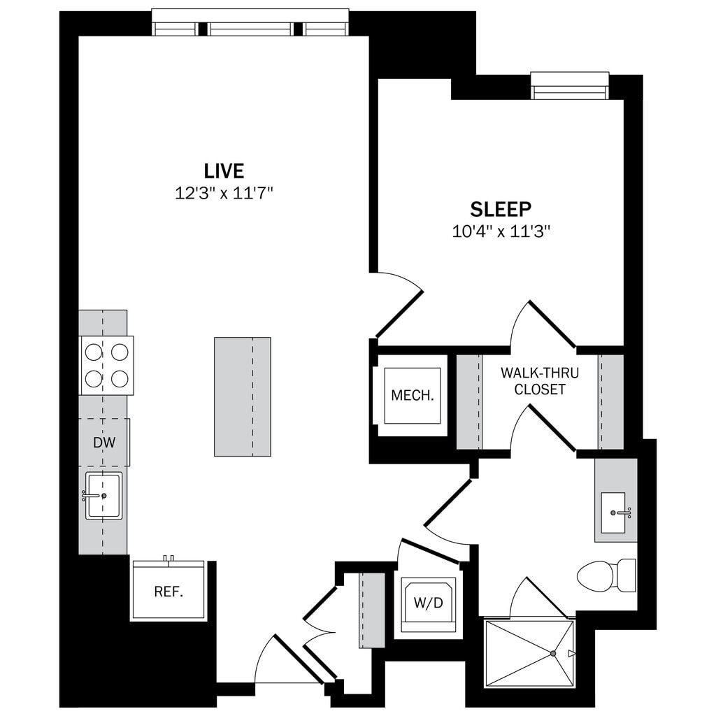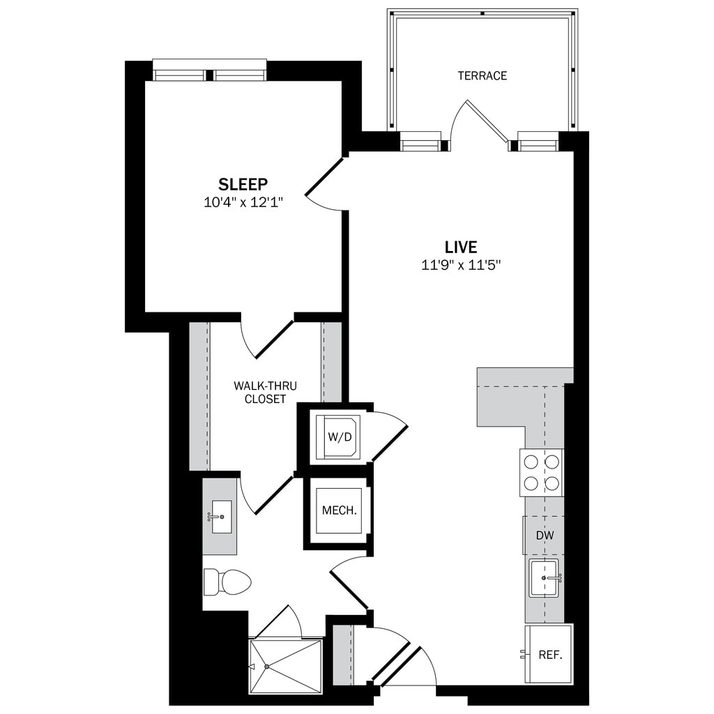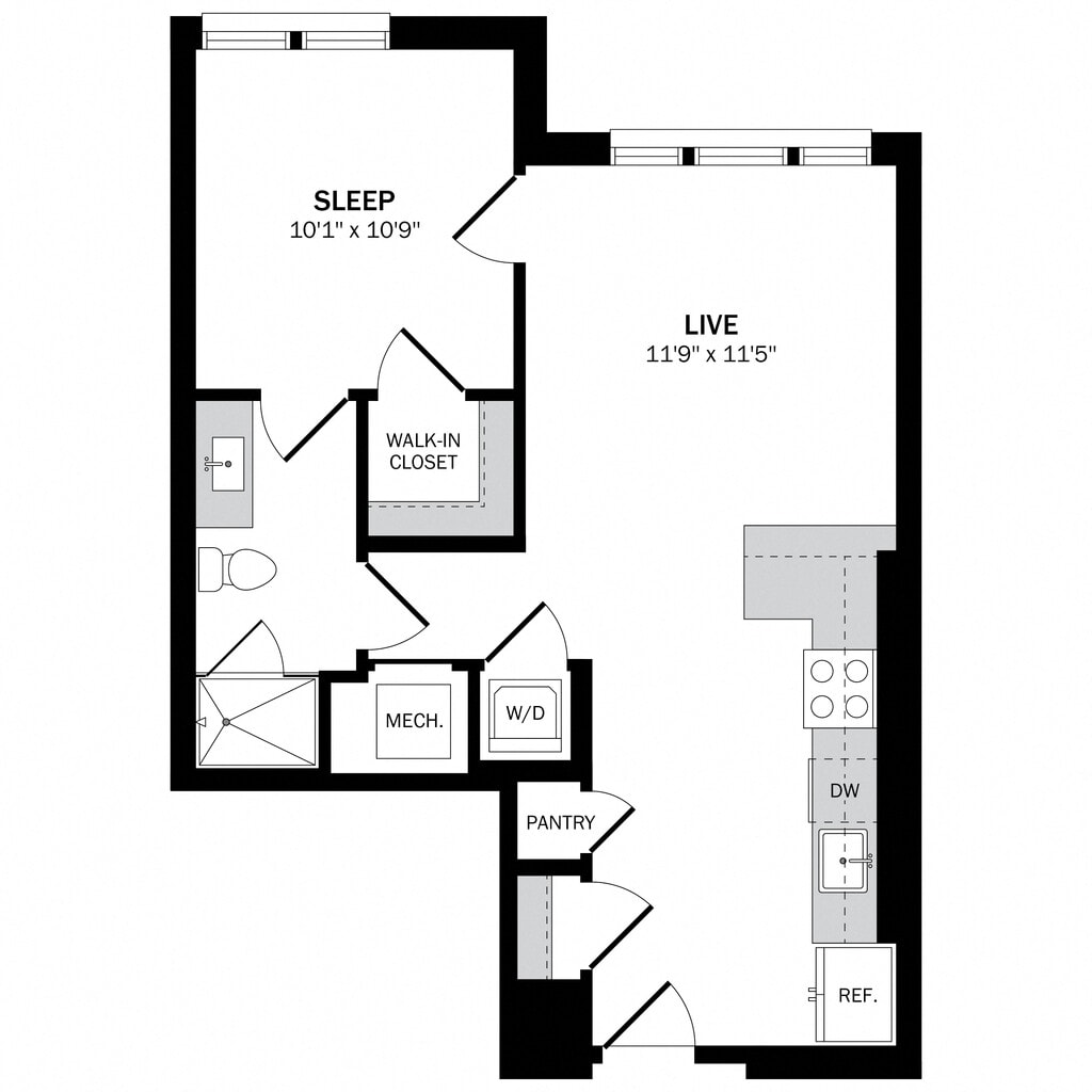 Estudio, 1 Baño, 428-451 pies²Disponible AhoraGalería del Modelo