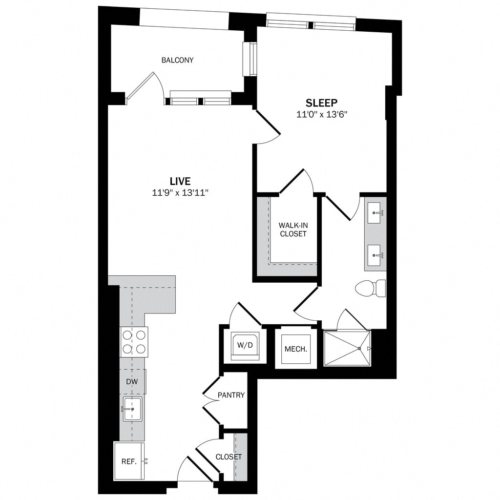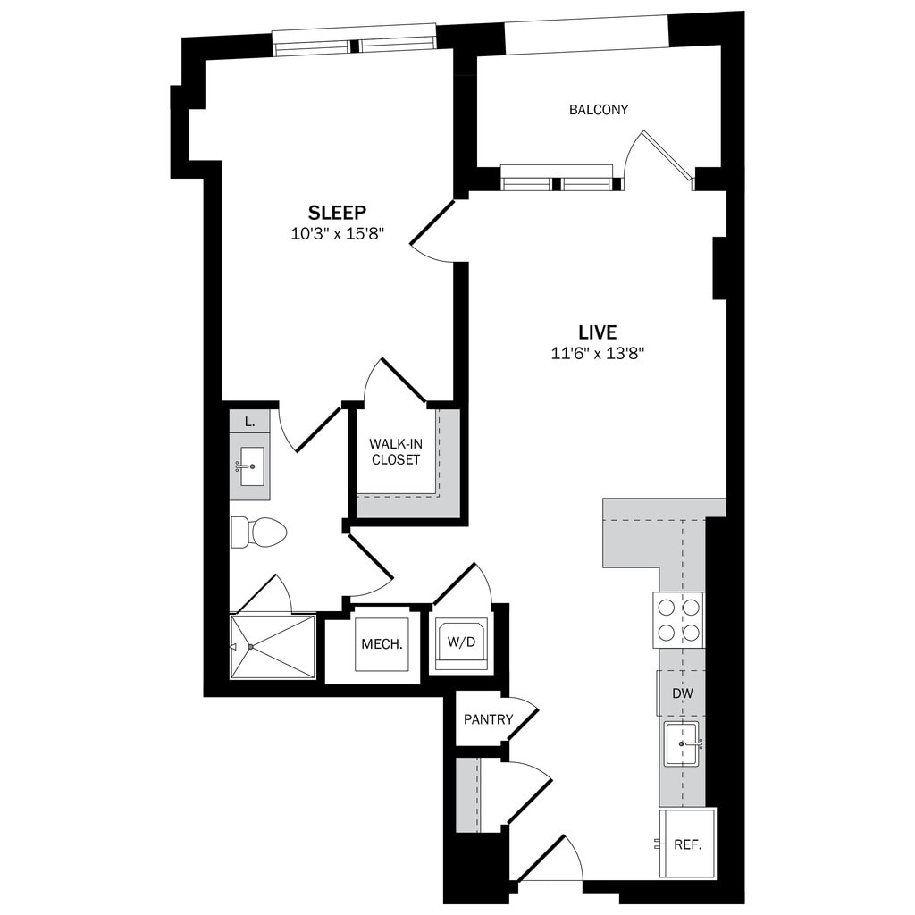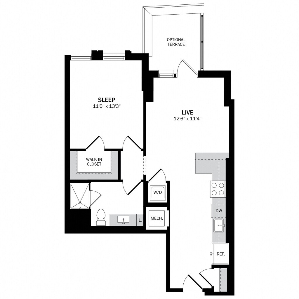 Estudio, 1 Baño, 428-451 pies²Disponible AhoraGalería del Modelo
