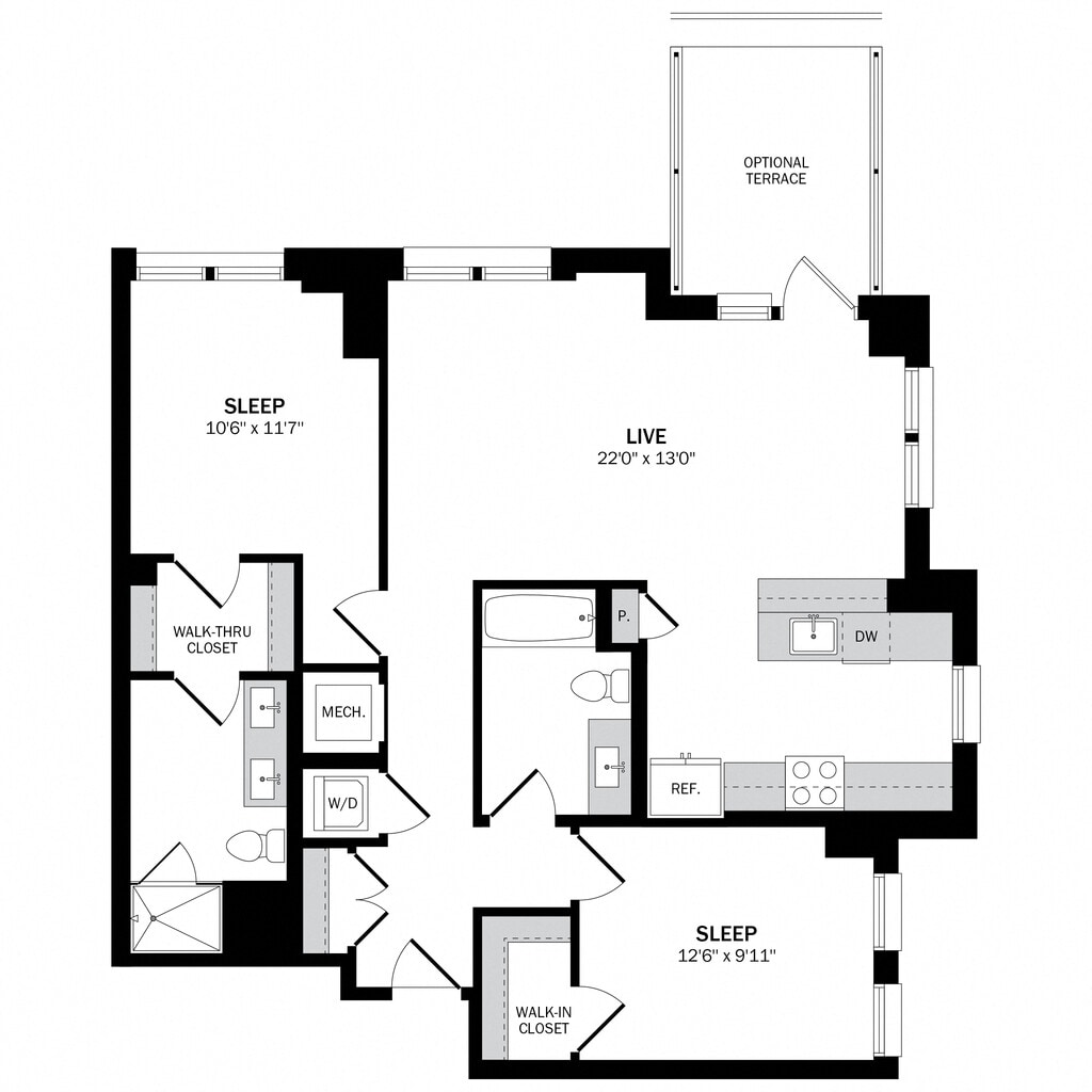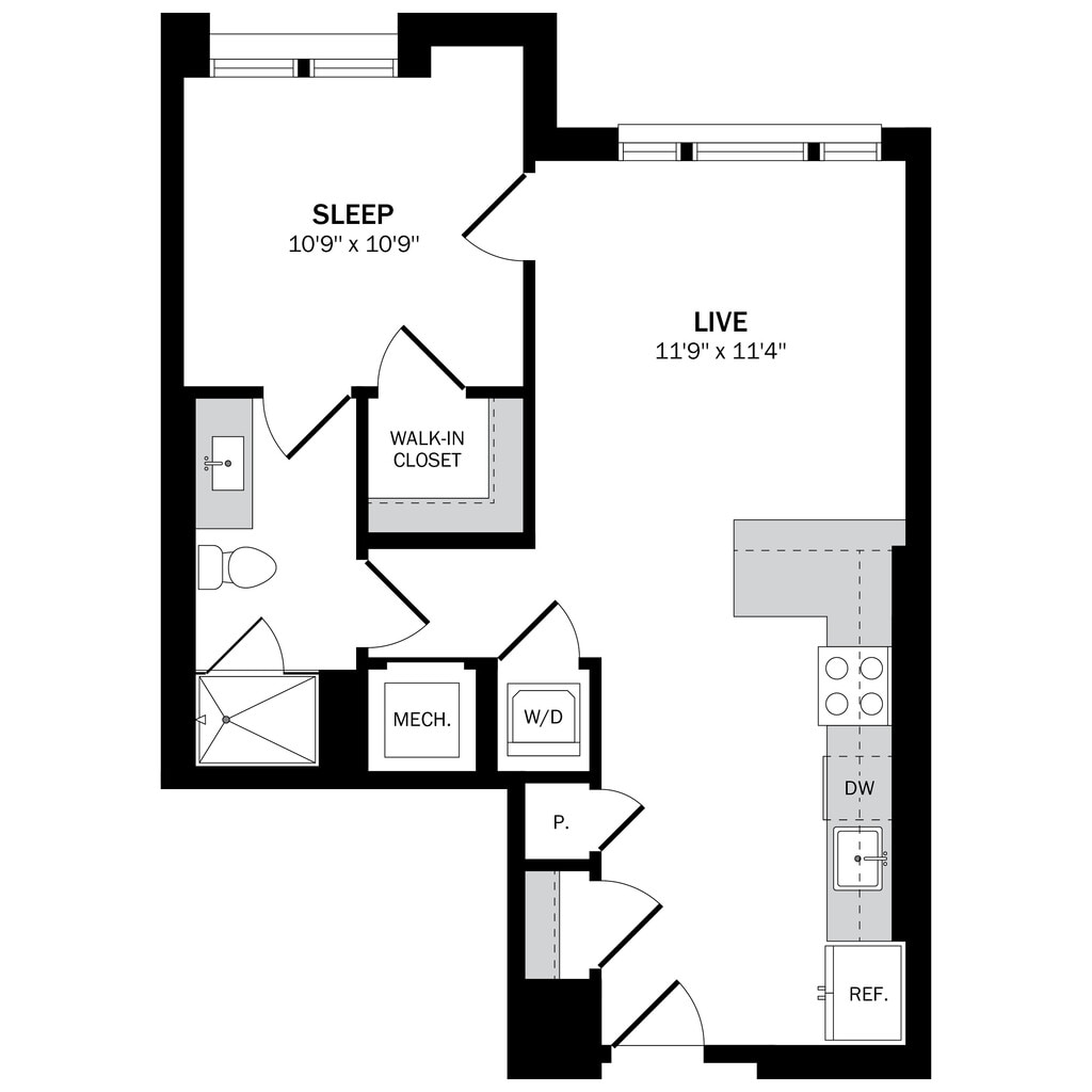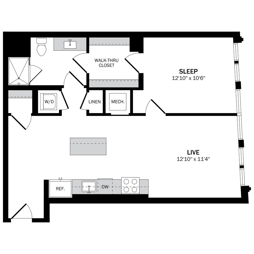 Estudio, 1 Baño, 576 pies²Disponible AhoraEl más grandeEsta opción tiene las unidades más grandes para este modeloGalería del Modelo