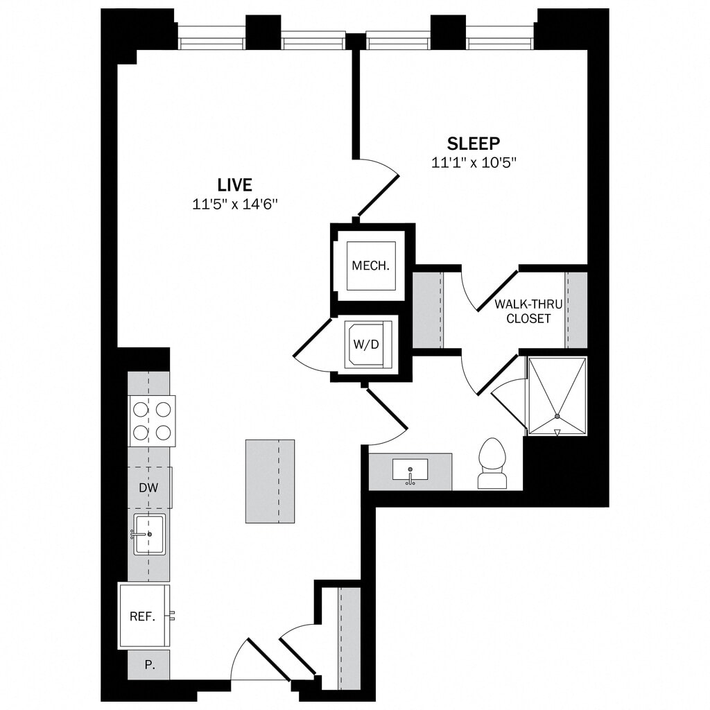 Estudio, 1 Baño, 517 pies²Disponible AhoraGalería del Modelo
