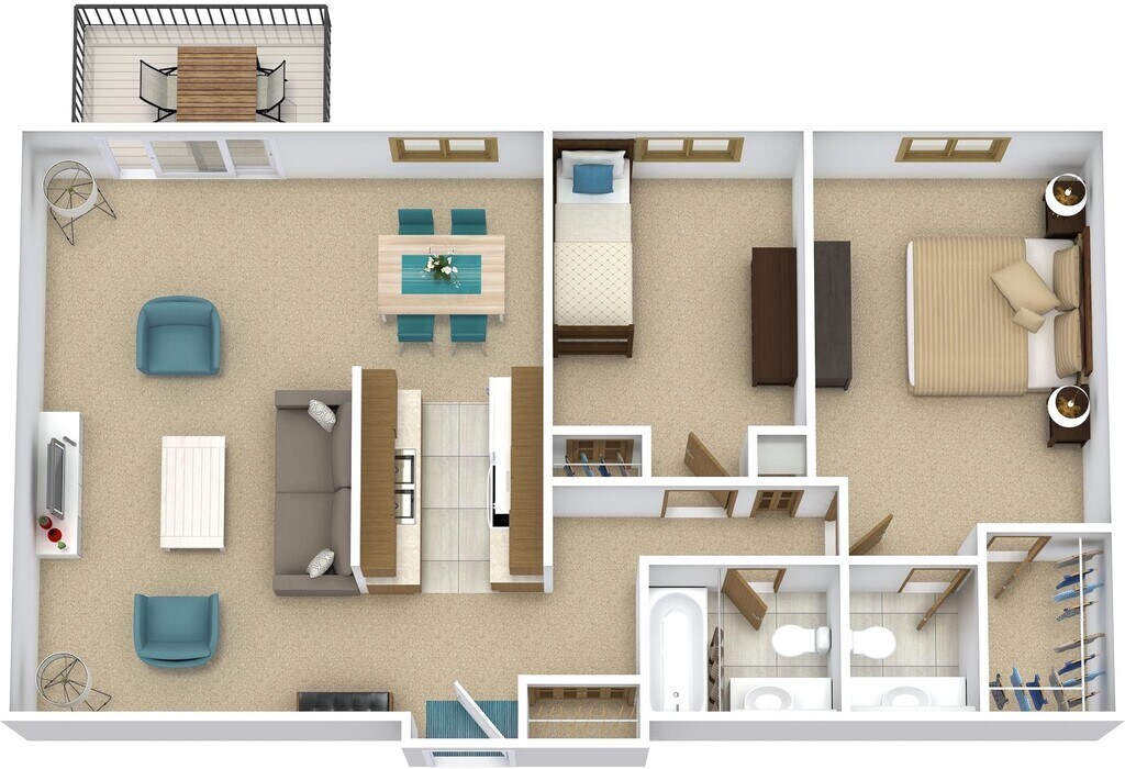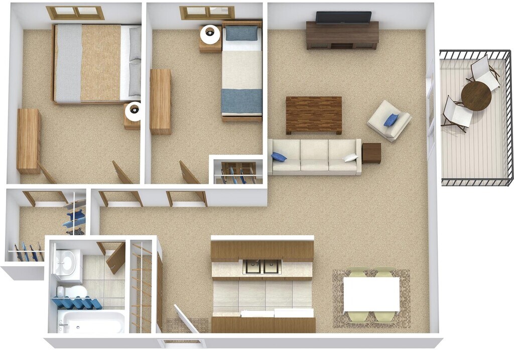 2 Dormitorios, 1 Baño, 800-950 pies²Precio Mensual TotalDisponible AhoraGalería del Modelo