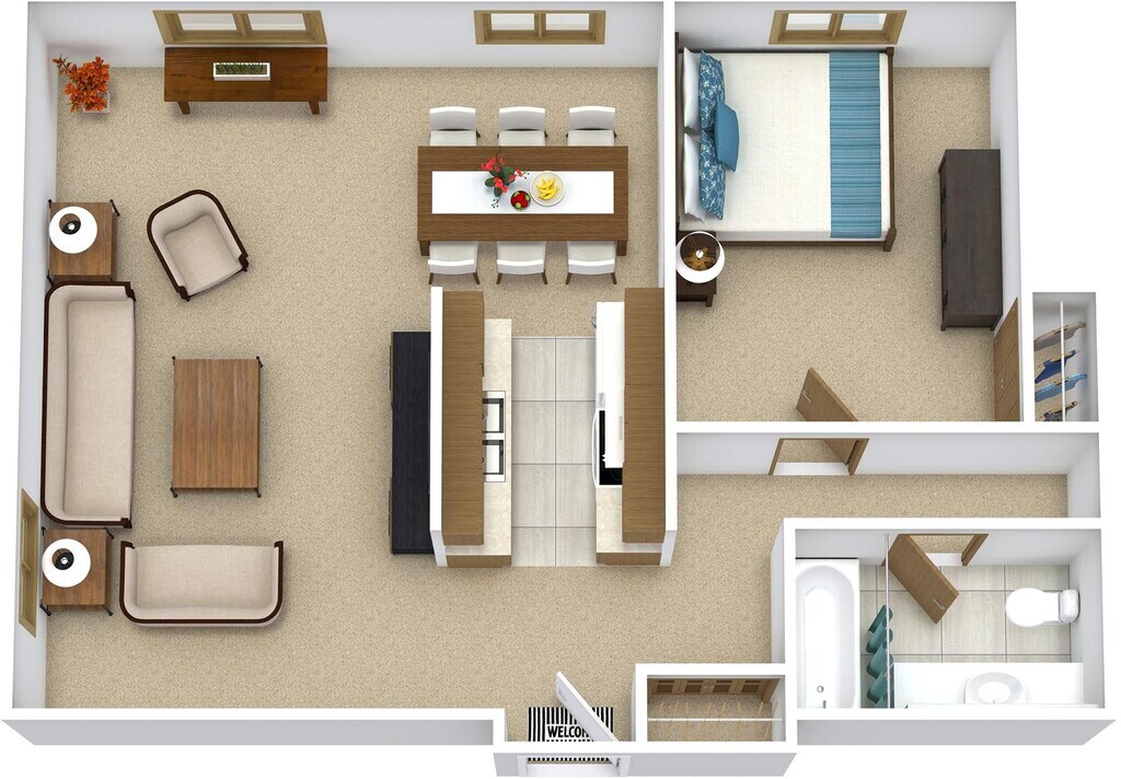 1 Dormitorio, 1 Baño, 750 pies²Galería del Modelo