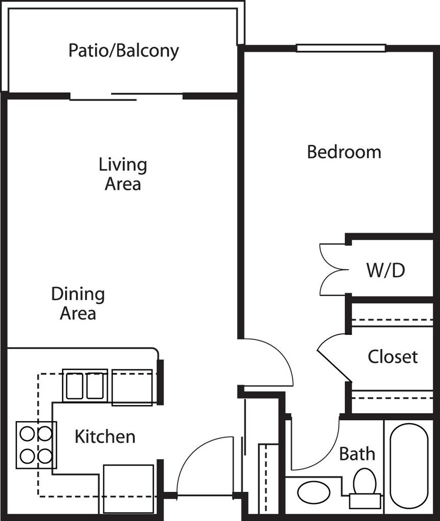 1 Dormitorio, 1 Baño, 589 pies²Disponible AhoraGalería del Modelo