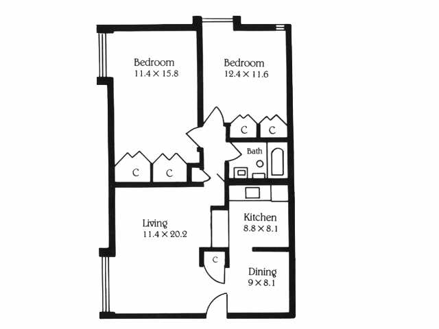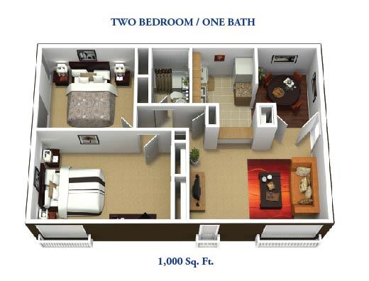Modelo de apartamento: 2Bedroom 1Bathroom2 Dormitorios, 1 Baño, 1000 sq ftDisponible November 15, 2025![]()