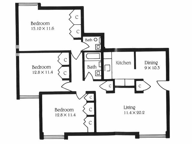 Modelo de apartamento: 3Bedroom 1.5Bathroom3 Dormitorios, 1.5 Baños, 1200 sq ftNo Disponible![]()