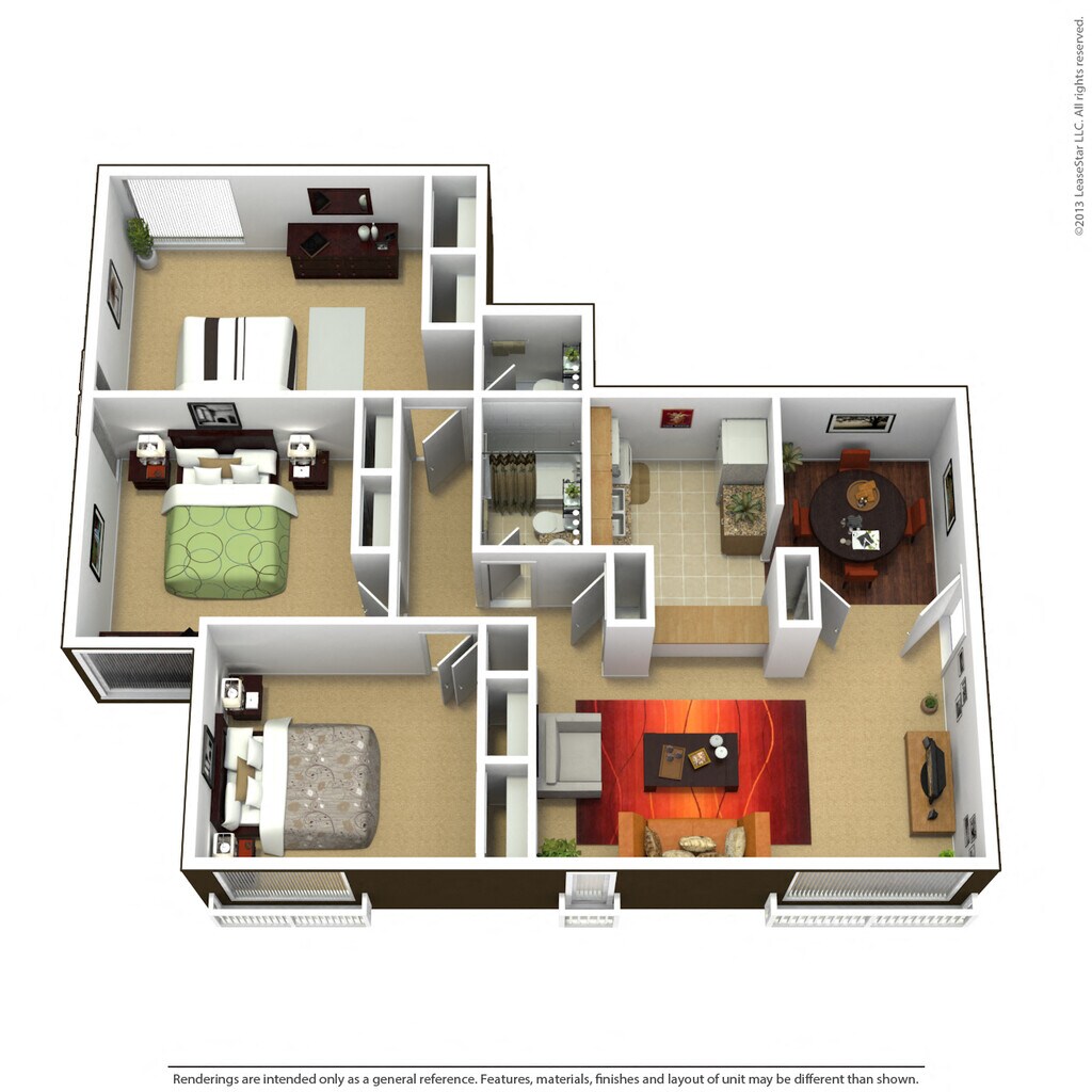 Modelo de apartamento: 3Bedroom 1.5Bathroom3 Dormitorios, 1.5 Baños, 1200 sq ftDisponible February 28, 2026![]()