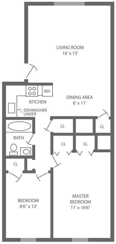 2 Dormitorios, 1 Baño, 728 pies²Disponible AhoraGalería del Modelo