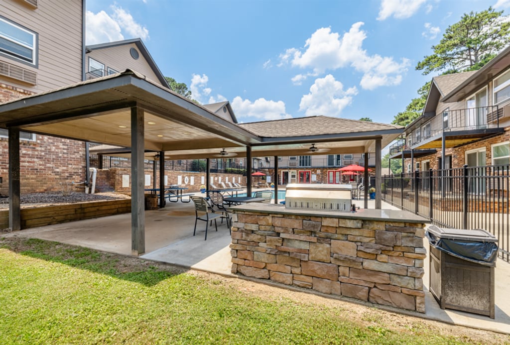 - La gran área de la piscina tiene un pabellón iluminado con mesas de picnic y parrilla.