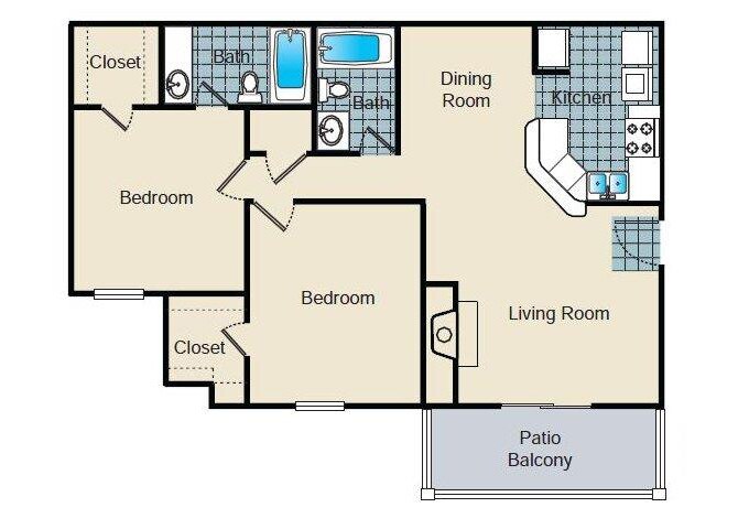 Modelo de apartamento: Two Bedroom2 Dormitorios, 2 Baños, 938 sq ftDisponible Ahora![]()