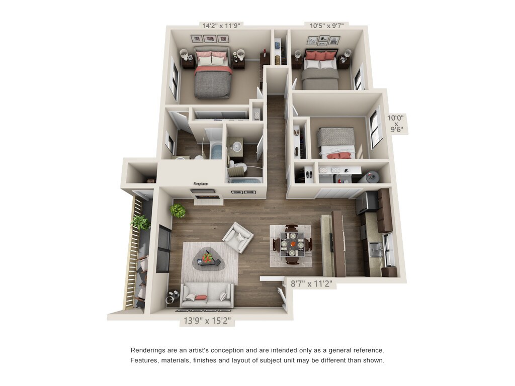 2 Dormitorios, 2 Baños, 946 pies²Disponible AhoraEl más grandeEsta opción tiene las unidades más grandes para este modeloGalería del Modelo