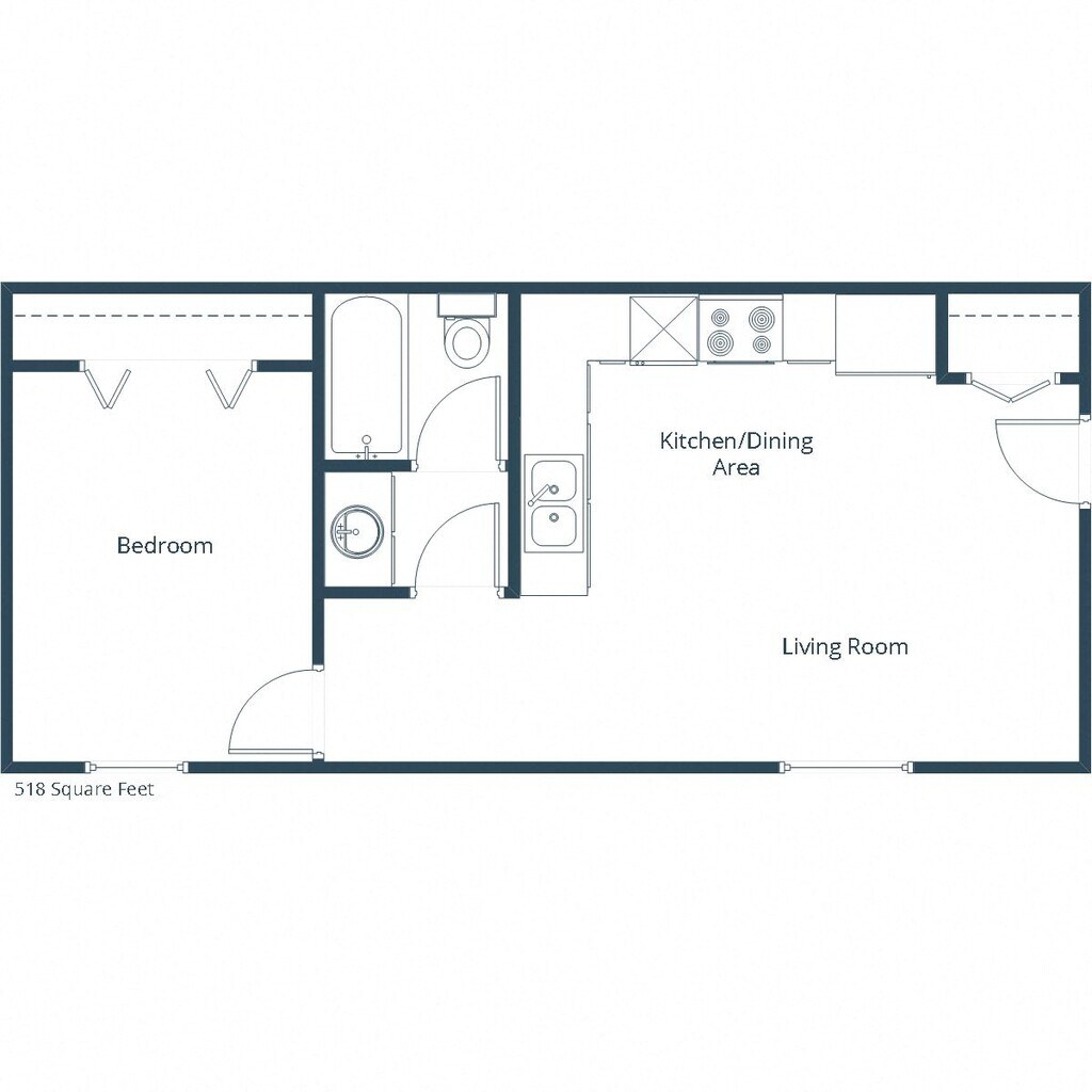 1 Dormitorio, 1 Baño, 518 pies²Disponible AhoraGalería del Modelo