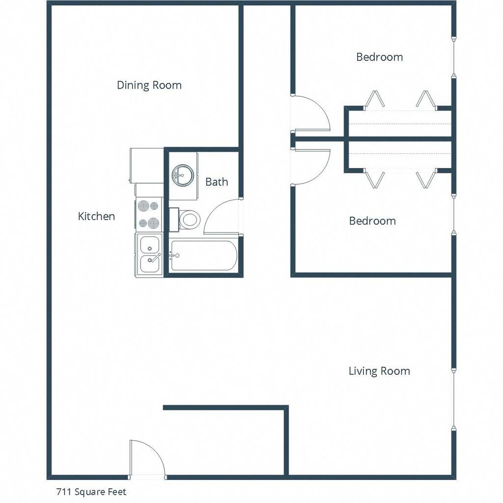 2 Dormitorios, 1 Baño, 711 pies²Galería del Modelo