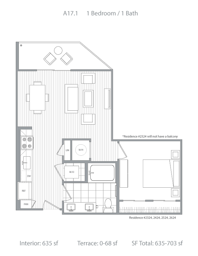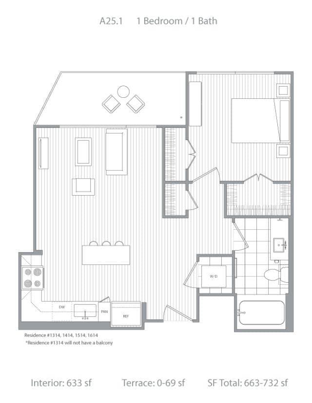 Estudio, 1 Baño, 653-698 pies²Galería del Modelo