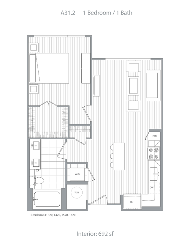 1 Dormitorio, 1 Baño, 600-793 pies²Disponible AhoraGalería del Modelo