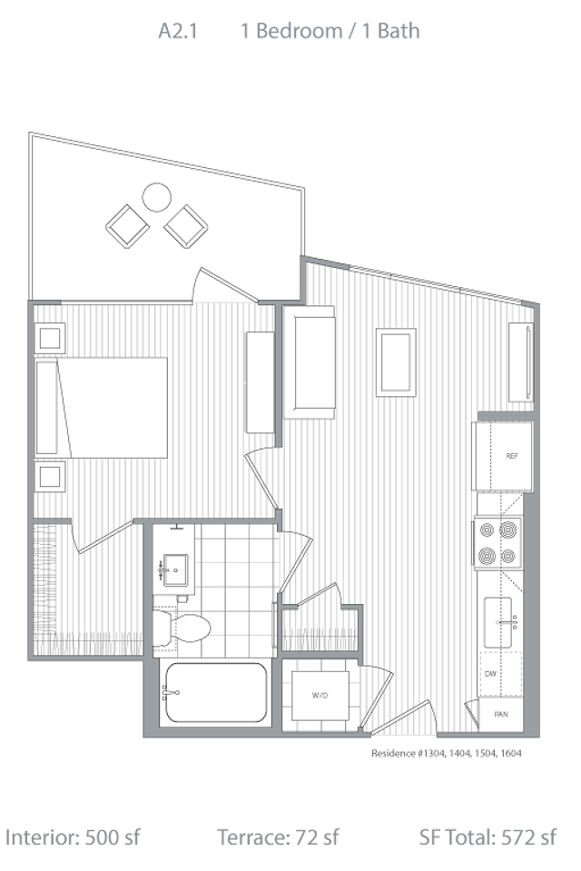 1 Dormitorio, 1 Baño, 600-788 pies²Disponible AhoraGalería del Modelo