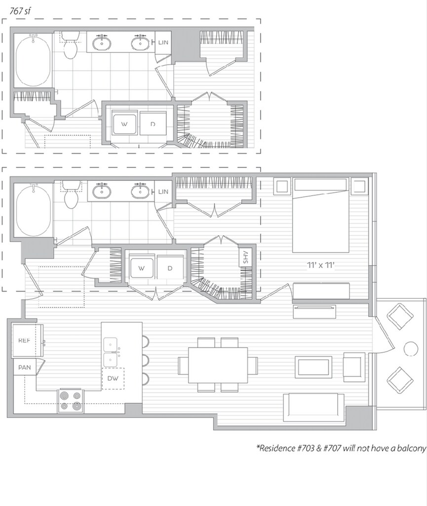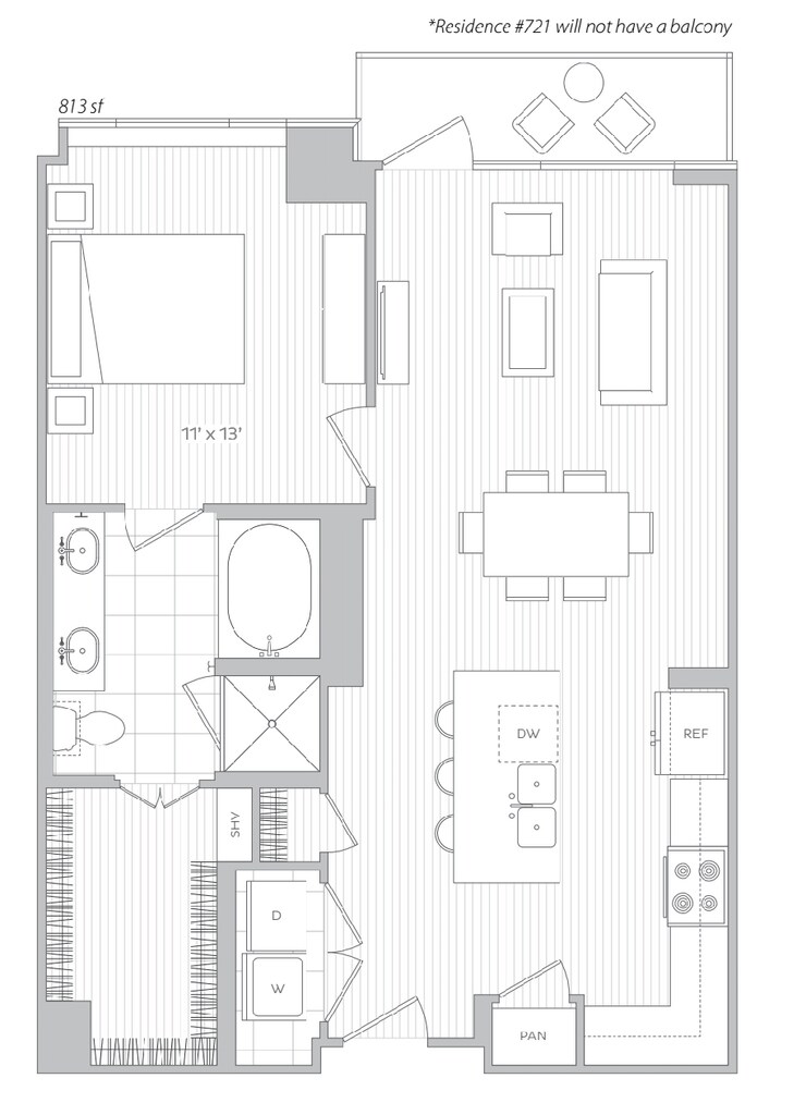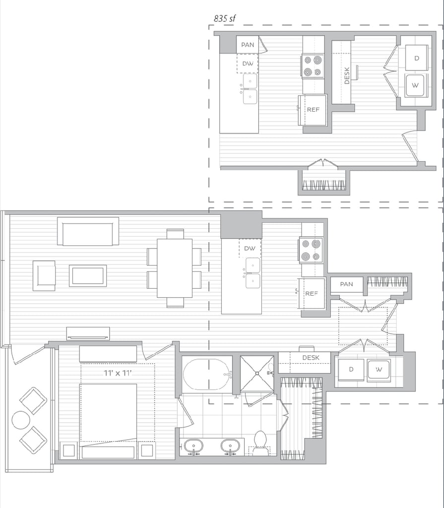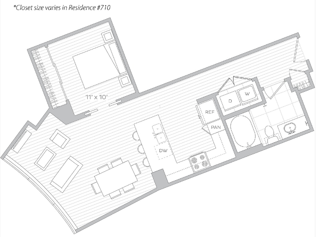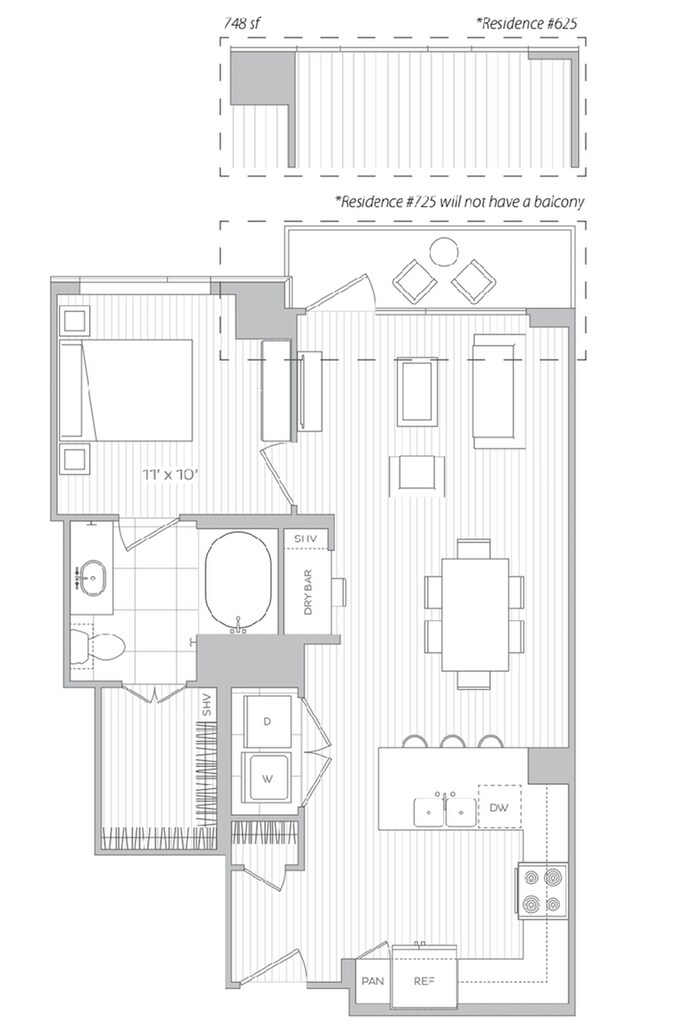 Estudio, 1 Baño, 670 pies²Disponible Nov 30Galería del Modelo