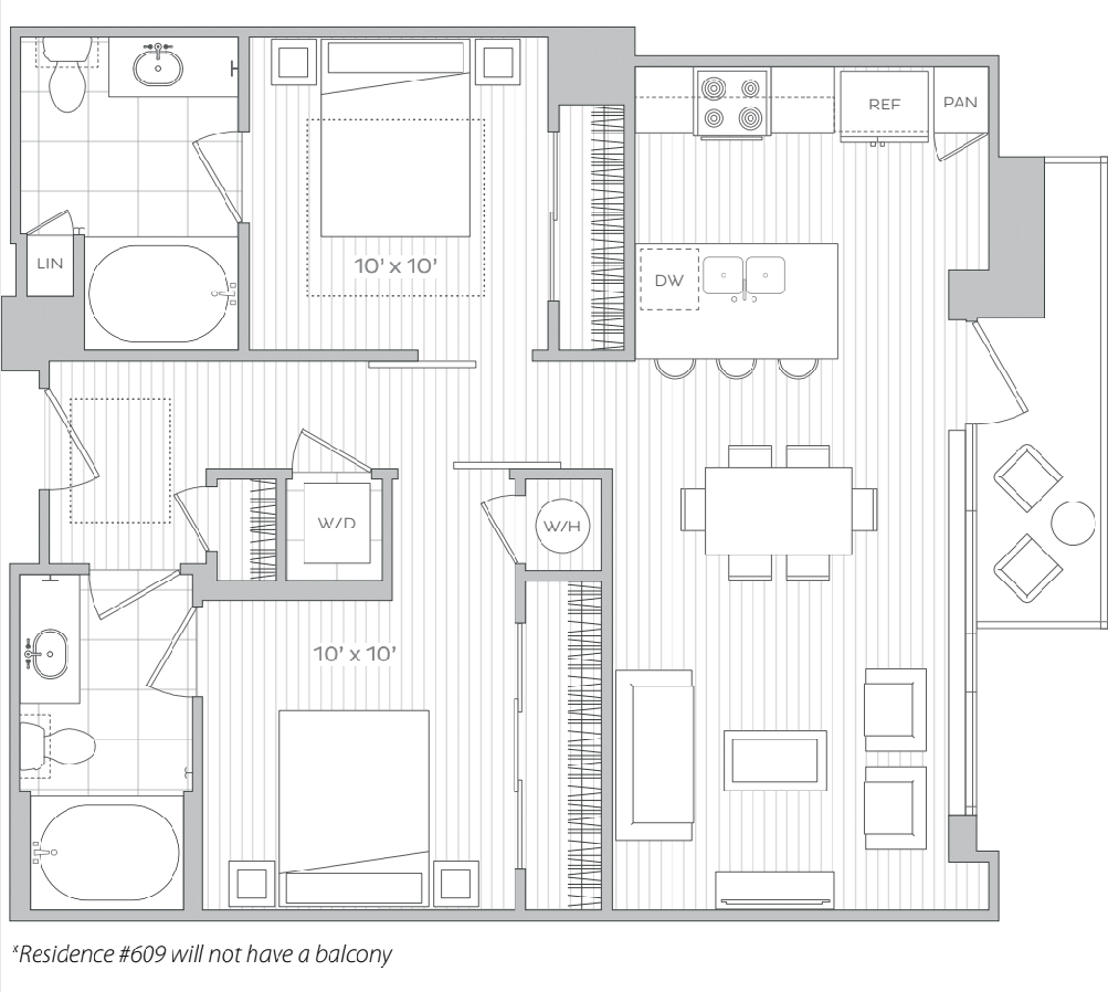 - Techos altos de 10 ft con ventanas del piso hasta el techo