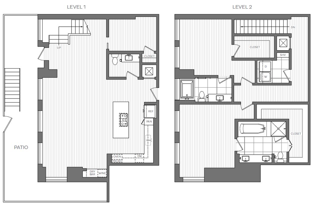 - Colección Townhome y Penthouse con casas elevadas de dos, tres y cuatro dormitorios con